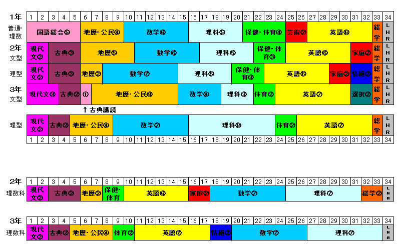 1ブロックは1週間の授業時数を表しています